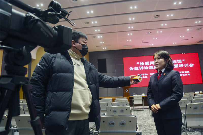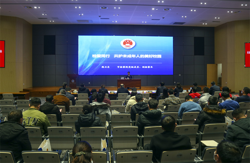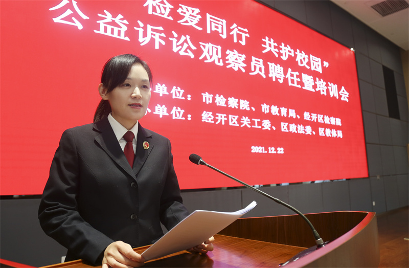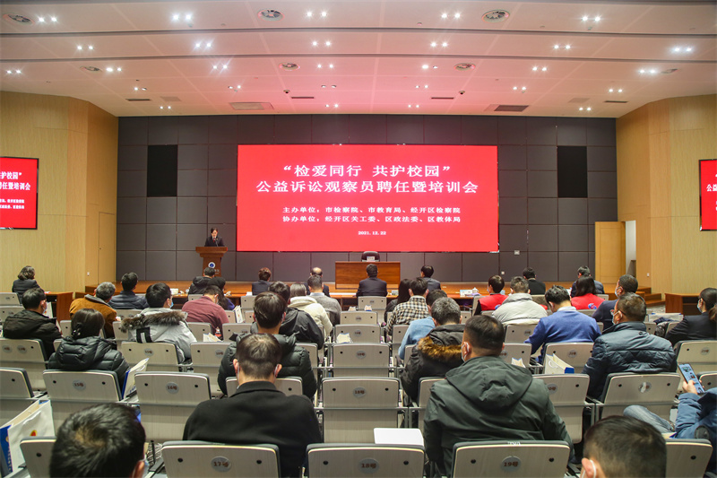 为全面加强未成年人全方位、综合保护,积极发挥公益诉讼检察职能在未成年人群体利益保护中的突出作用,推广徐州经开区校园公益诉讼观察员工作机制,结合“岁寒心暖”检察官进网格活动要求,12月22日,“检爱同行 共护未来”校园公益诉讼观察员聘任暨培训活动在徐州经开区金龙湖书院举行。市检察院党组成员、副检察长韩卫东、市教育局党委委员、副局长徐志、区关工委常务副主任余承琅、区检察院党组书记、检察长吕青、区政法委副书记马兆国以及有关领导,教师、家长校园公益诉讼观察员代表、网格员代表参加会议。