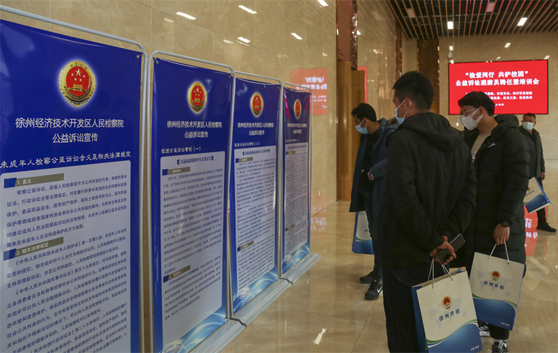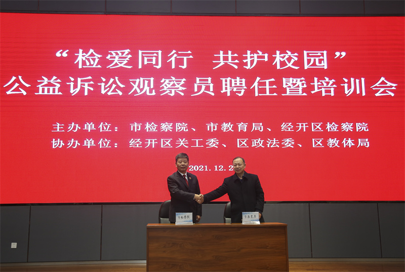 会上,与会人员观看了未成年人检察工作的微电影《“未”爱出发》,加深了对未成人检察工作认识。市检察院与市教育局共同签署了《关于建立校园公益诉讼观察员制度的意见》,以文件形式将徐州经开区校园公益诉讼观察员制度在全市推广,并为校园公益诉讼观察员代表颁发聘书,徐州经开区检察院就相关工作情况做经验交流发言,最后,市检察院党组成员、副检察长韩卫东为校园公益诉讼观察员代表进行专题培训。